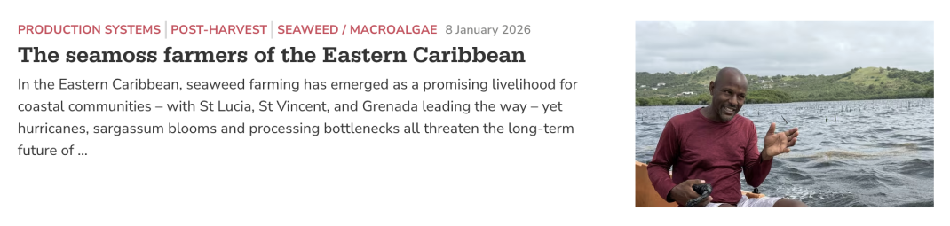 Seaweed farming in St. Vincent and the Grenadines is at a critical rebuilding stage, with recovery efforts shaping the sector’s future. The country has strong natural conditions, committed farmers, and growing organisational support, but the sector remains highly vulnerable to hurricanes, as highlighted by Hurricane Beryl.