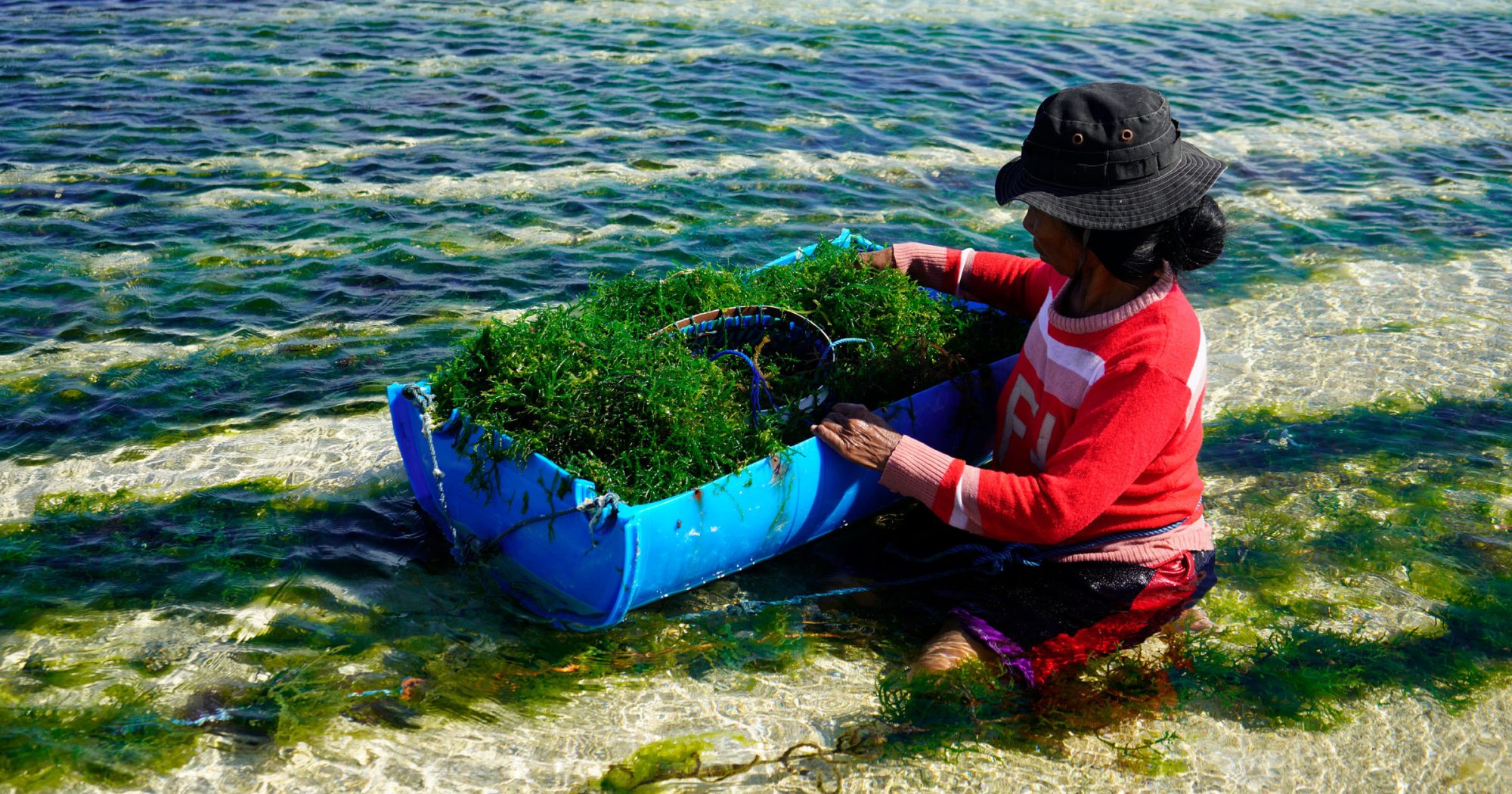 The amount of labour needed for harvesting will depend on the operations, farming method and size of the boat. The size of the boat in turn depends on the operations and capital availability of the farmer. Boats are not always powered by an engine and some need to be paddled. In off-bottom cultivation the harvesting is usually done at low tide and smaller buckets of all types are used to collect the harvested seaweed from the lines or even entire lines.