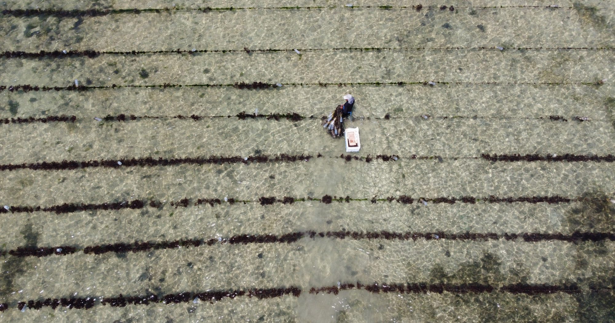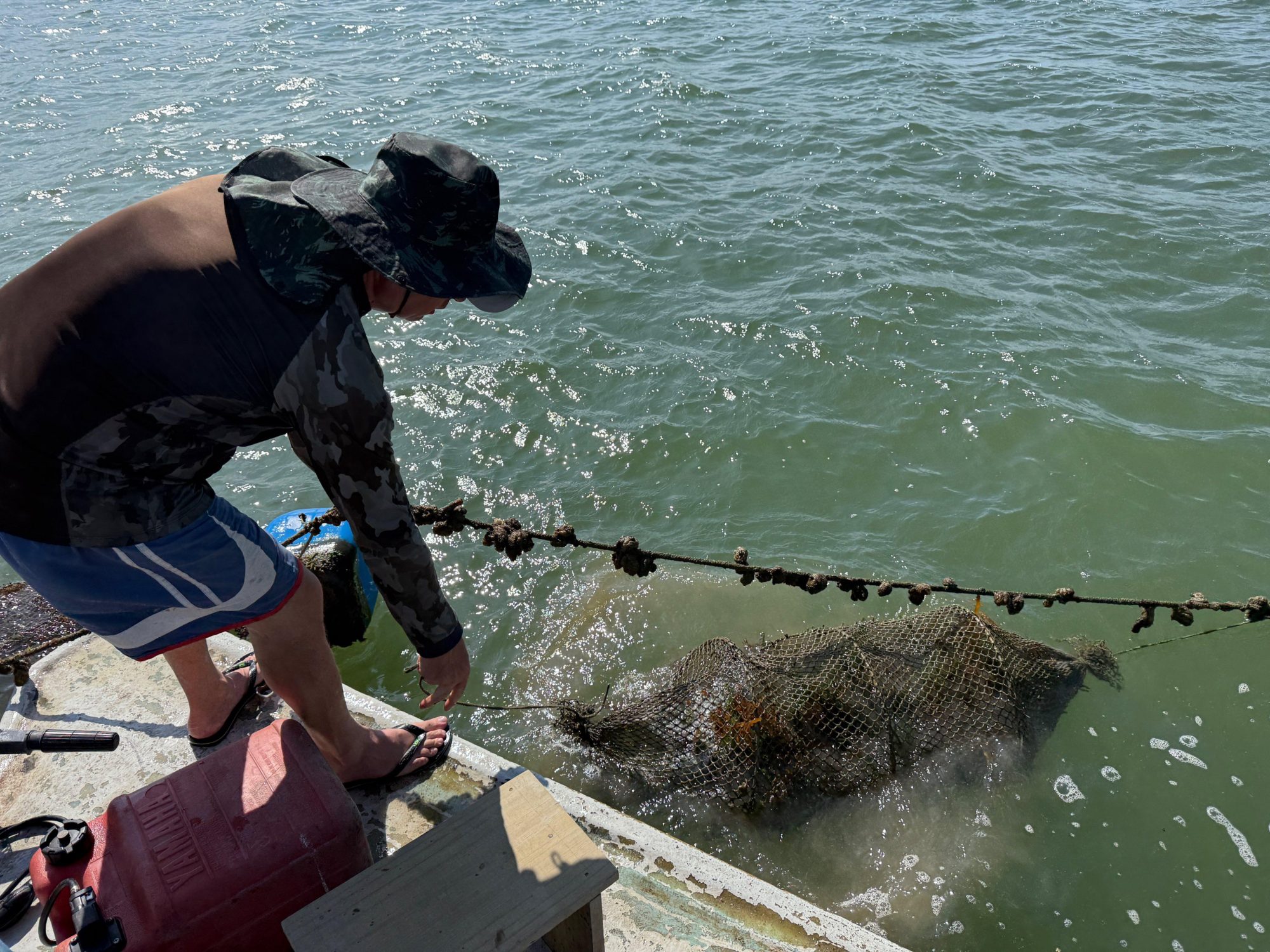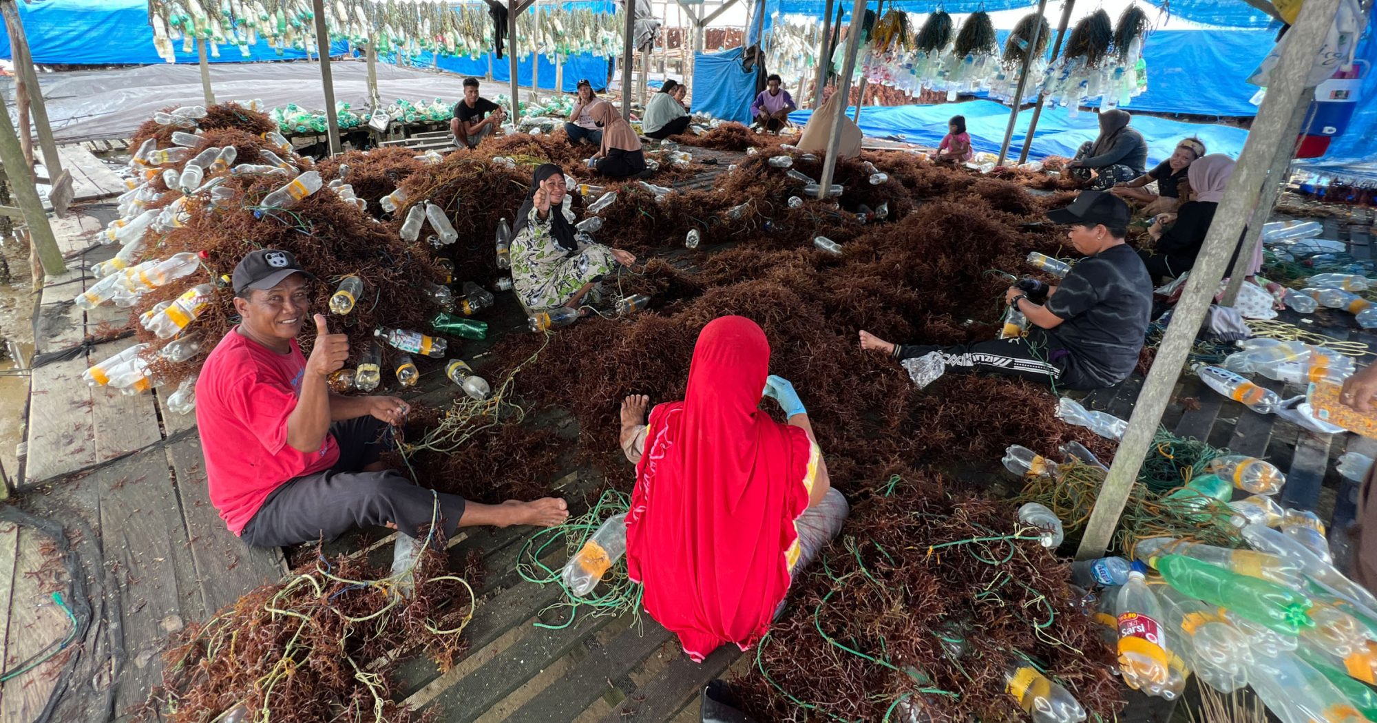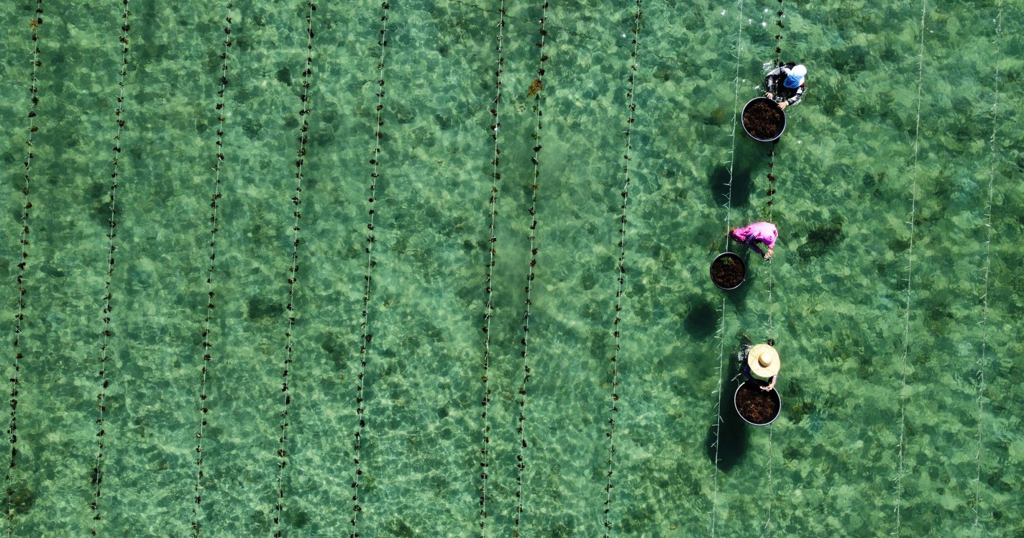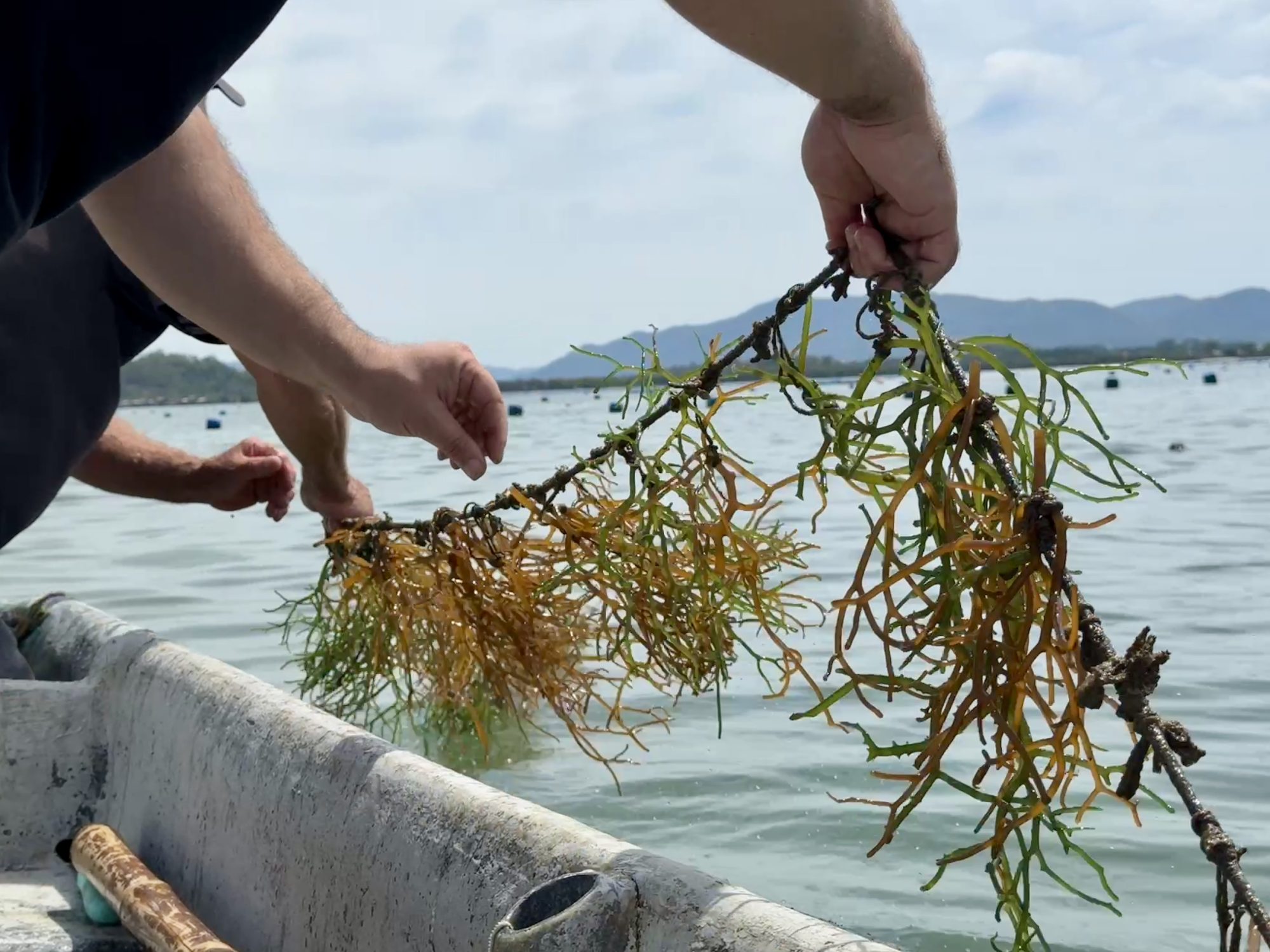 Once prepared, the seeded lines are deployed to marine farms.