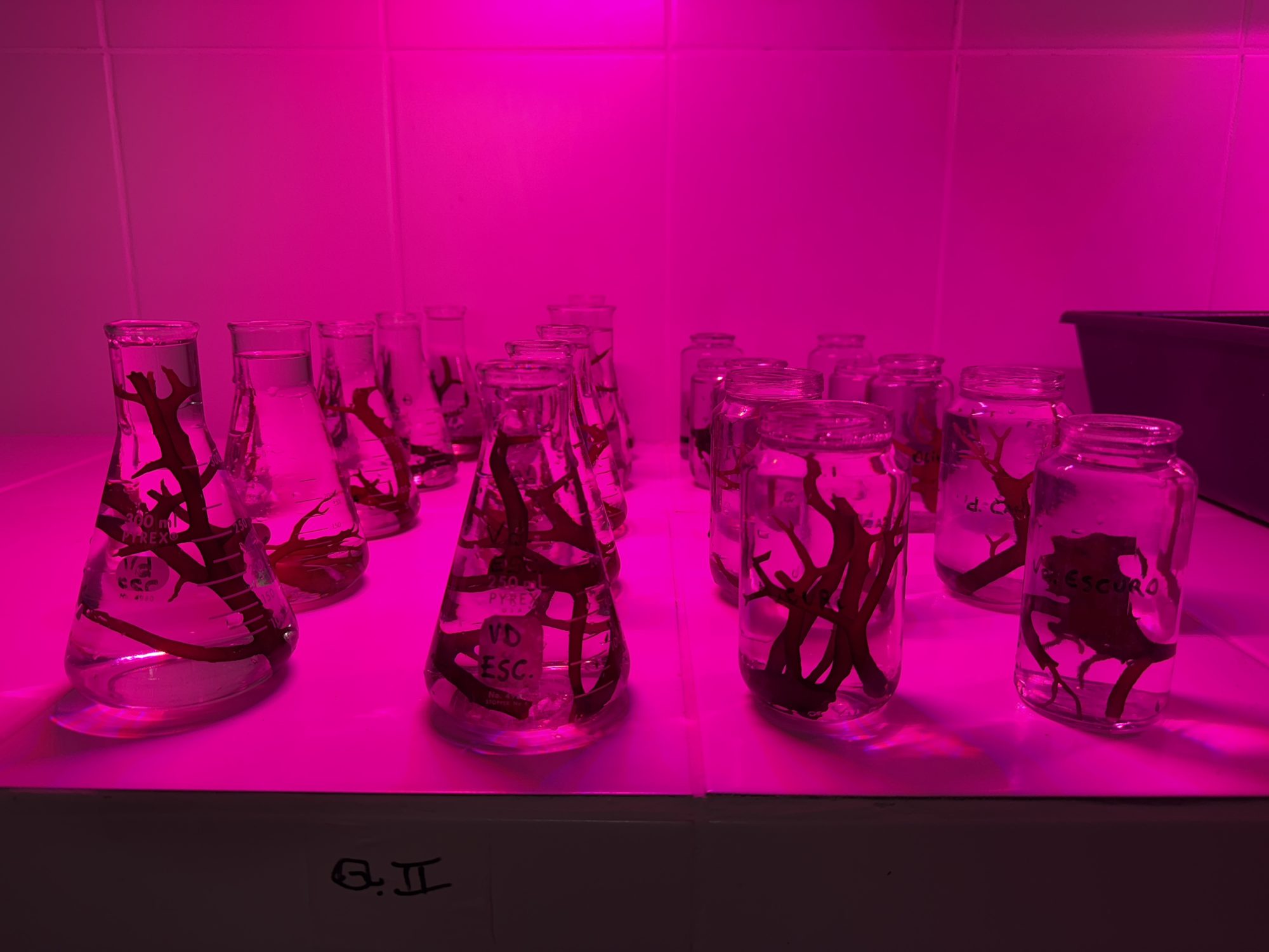 In Brazil, the process of domestication of the seaweed Kappaphycus alvarezii (Doty) L.M. Liao has been taking place since 1995 and 1996 with the introduction of a brown tetrasporophyte and a pale brown gametophyte, respectively, in the experimental marine farm of the Fisheries Institute, Ubatuba Bay, São Paulo State, Brazil. From these initial strains, spontaneous strains were generated with different colours. This cultivation site is currently the only active biobank for Eucheumatoids in the region.