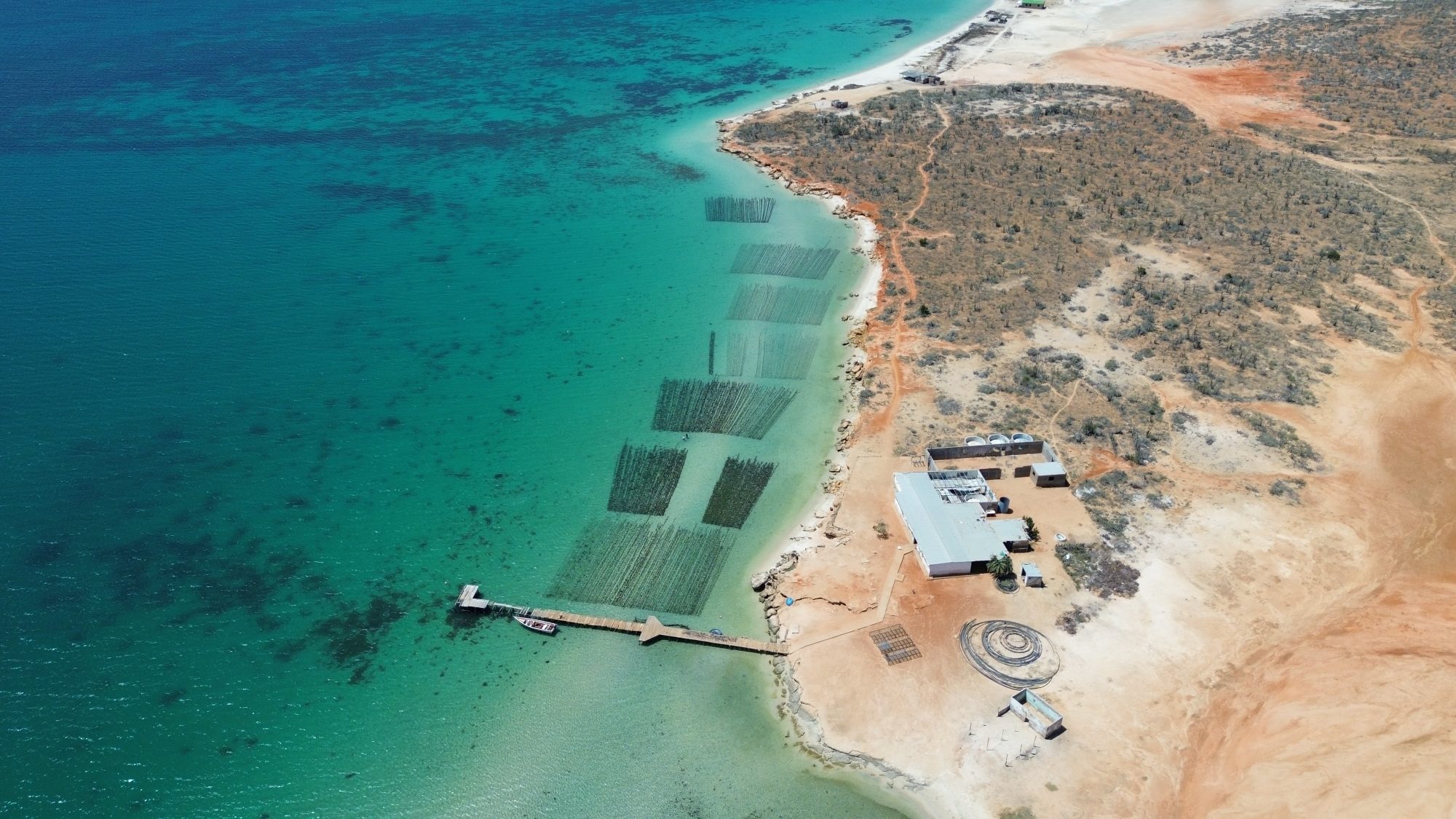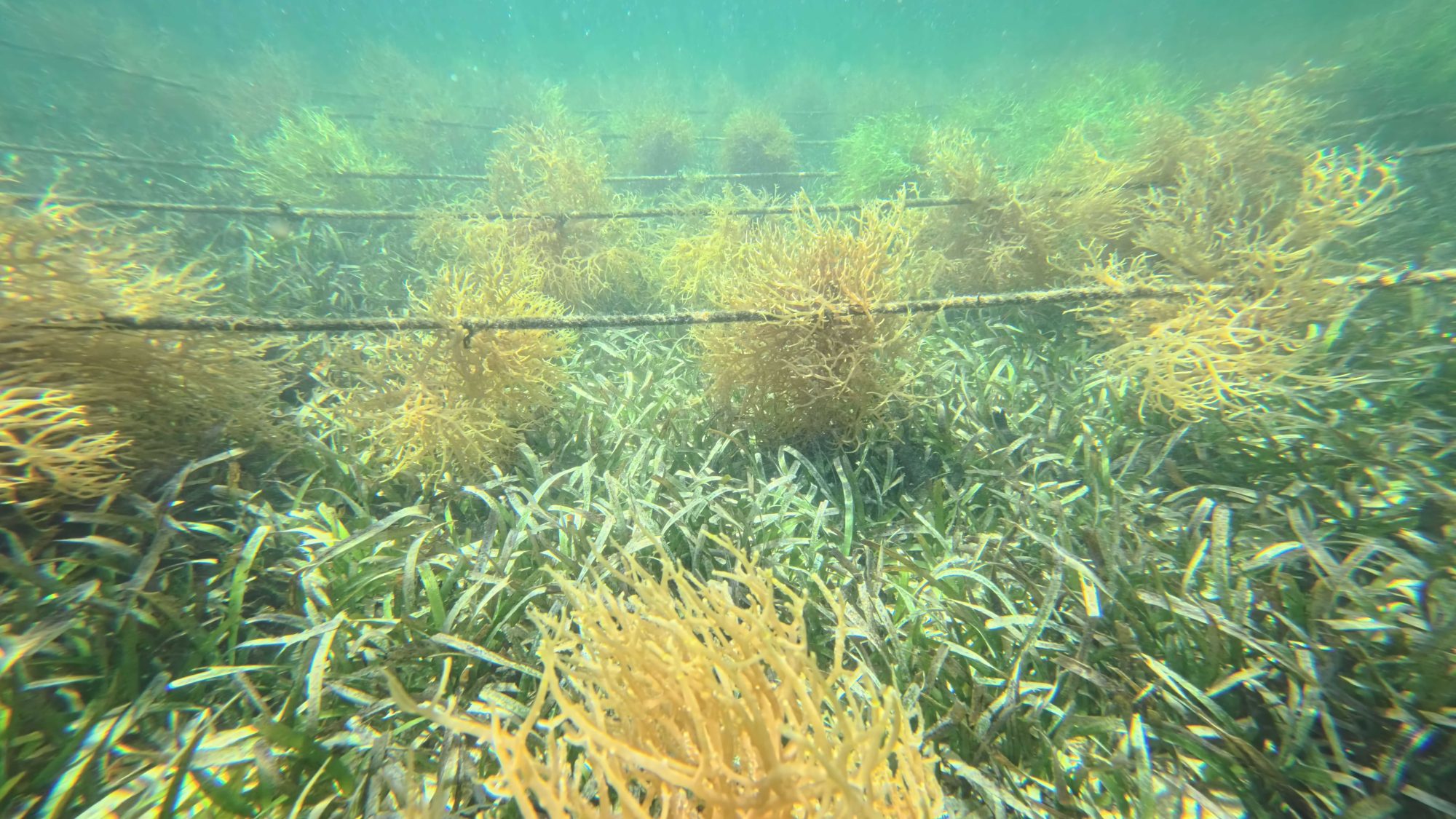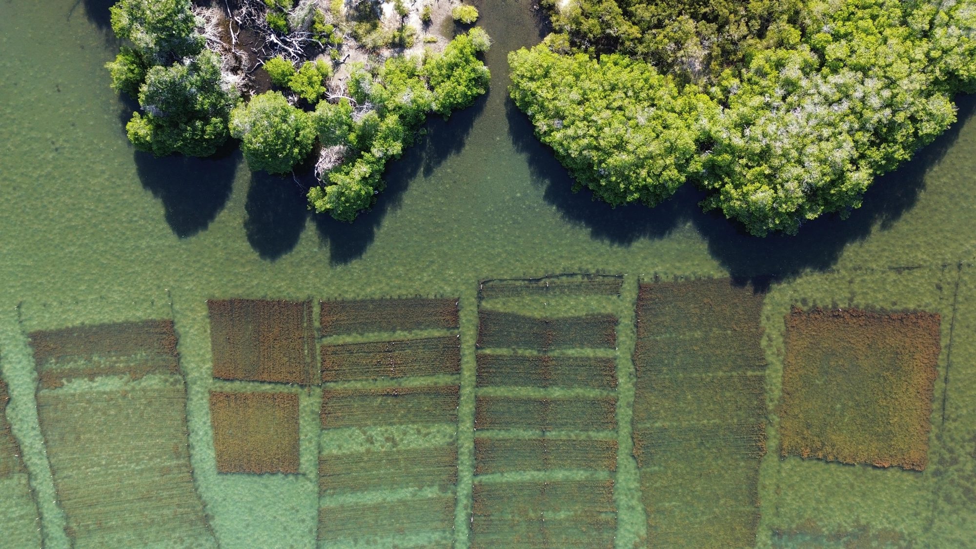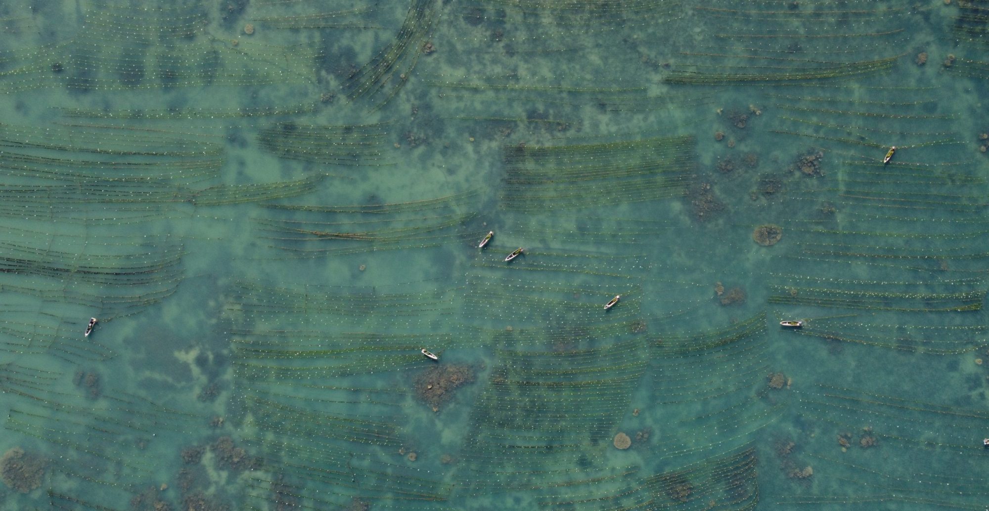 Different substrates beneath the farms indicate how seaweed aquaculture interacts with the environment.