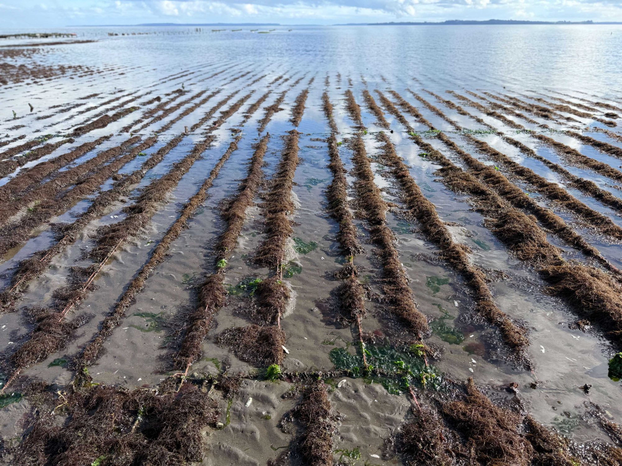 In Chile, Gracilaria is cultivated using two primary methods defined by their infrastructure. The traditional method is bottom culture, where Gracilaria is seeded directly into the seabed. This method doesn’t require infrastructure at all and generates no inorganic waste from the cultivation itself (such as microplastic from the cultivation lines used for other types of seaweed farming).