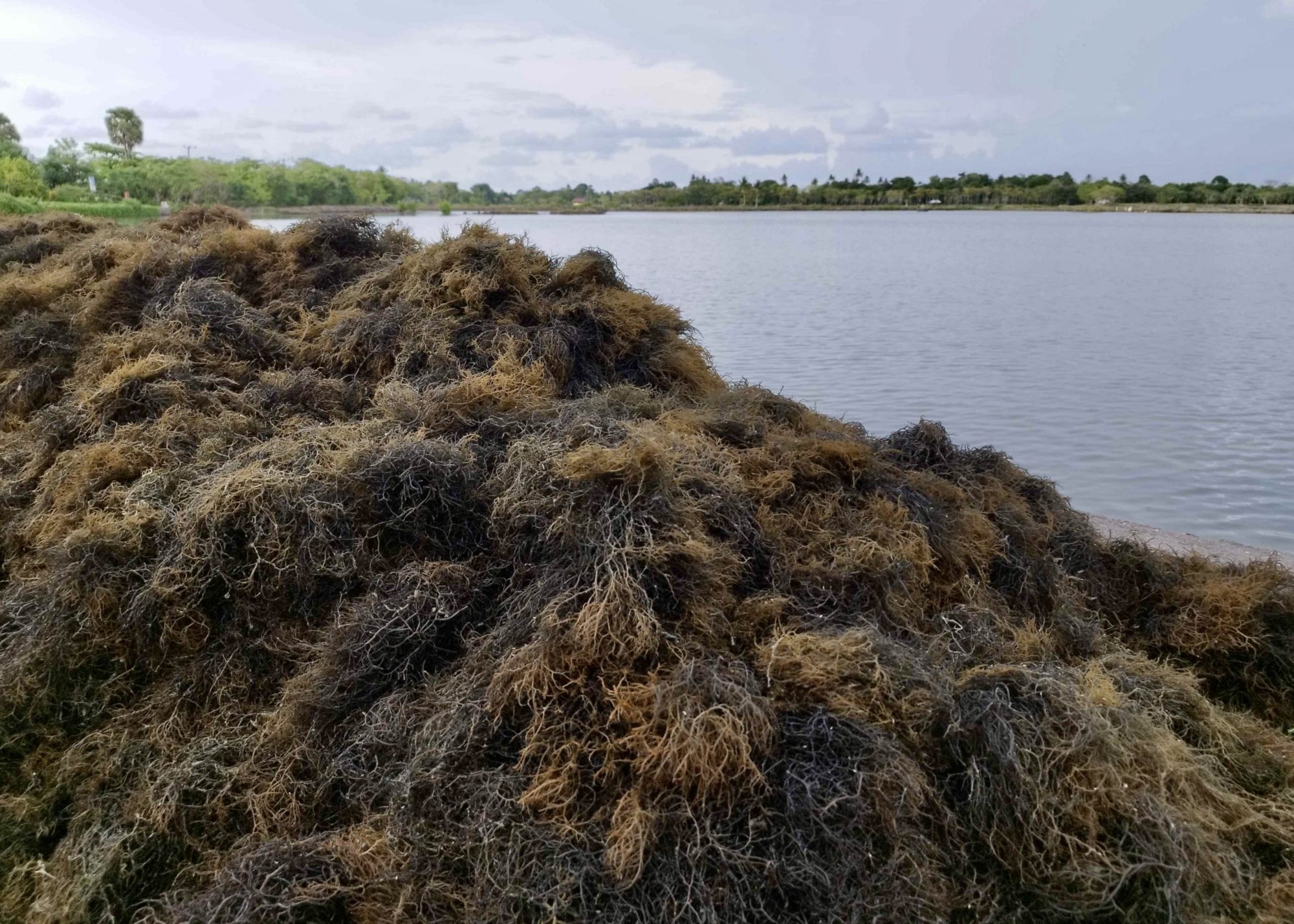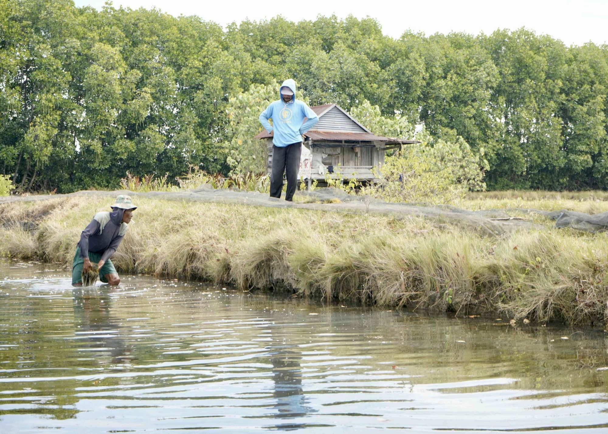 In scattered pond culture, harvesting is done by picking up the seaweed and bringing it to shore, since farmers can walk in the shallow ponds. Depending on the amount of biomass, a boat is utilised for transportation to shore.