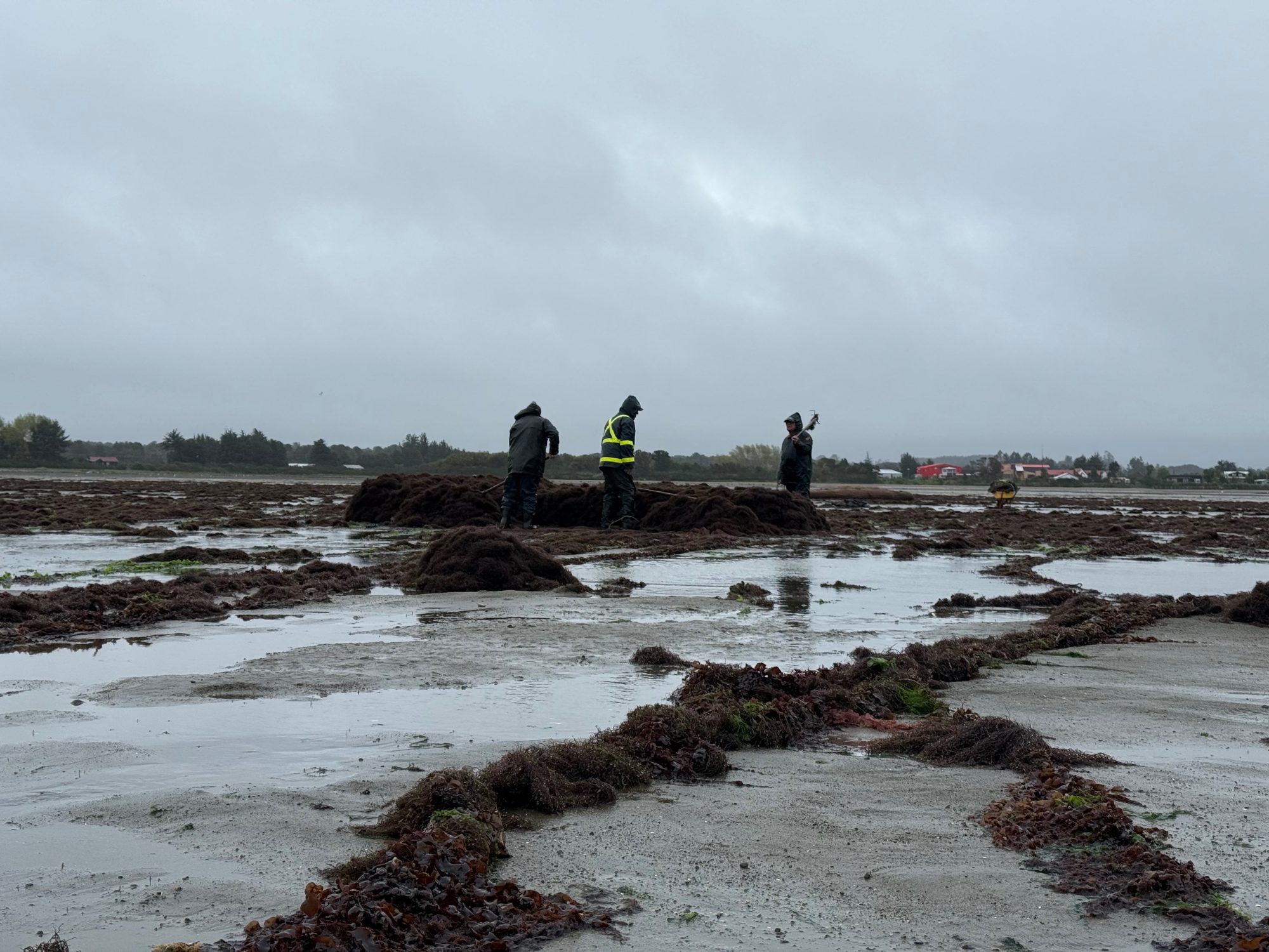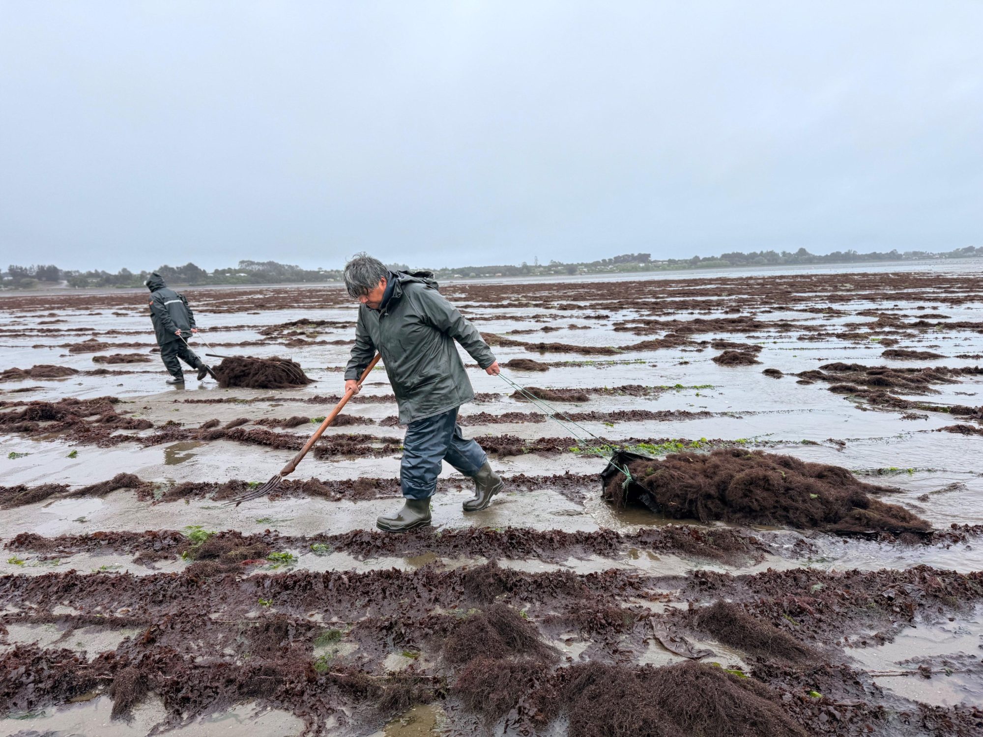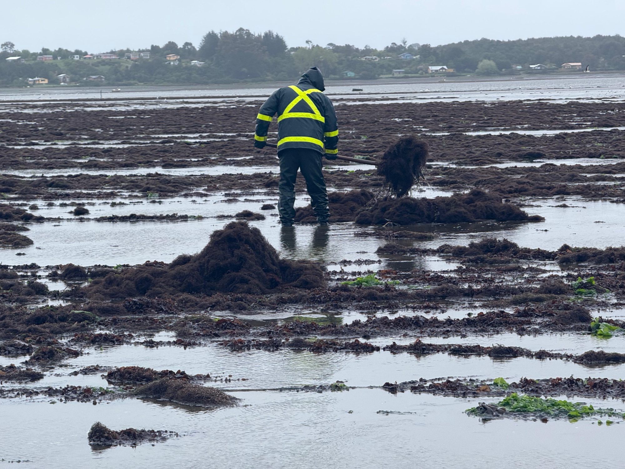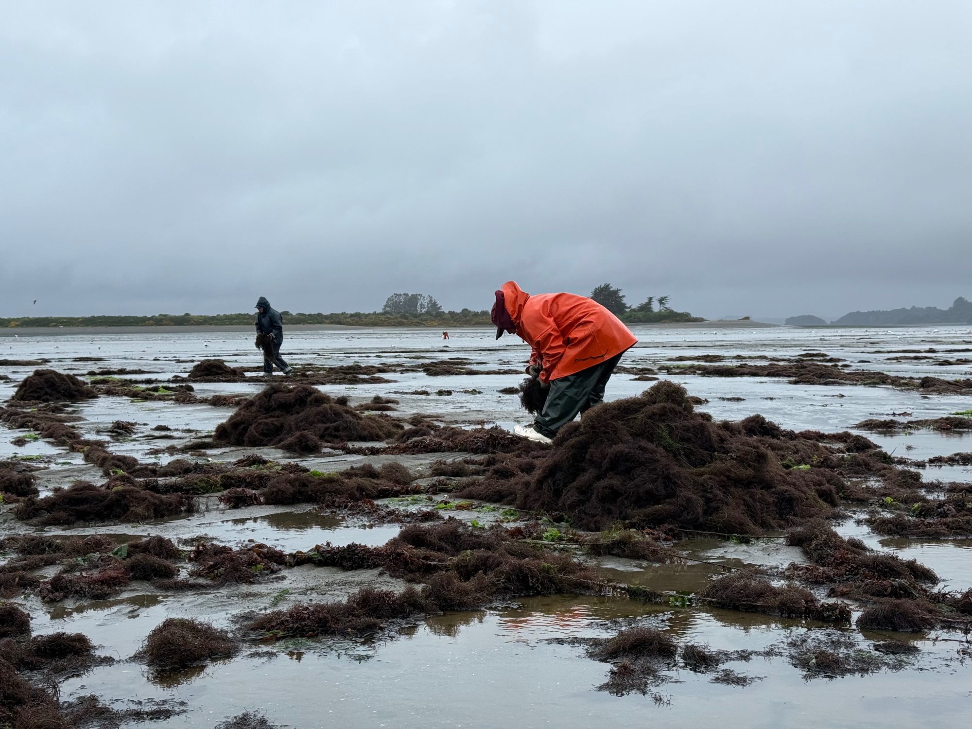 Transport to shore relies on specialised polystyrene rafts with a capacity of 1,000 kg, with larger 3-4 ton nets being pulled ashore using boats during high tide, bull power, or tractors. After reaching shore, the algae is moved inland using flat carts. All harvesting and transport activities in Chilean farms are planned around tide cycles and weather conditions, with sunny periods being particularly important for sun-drying requirements.