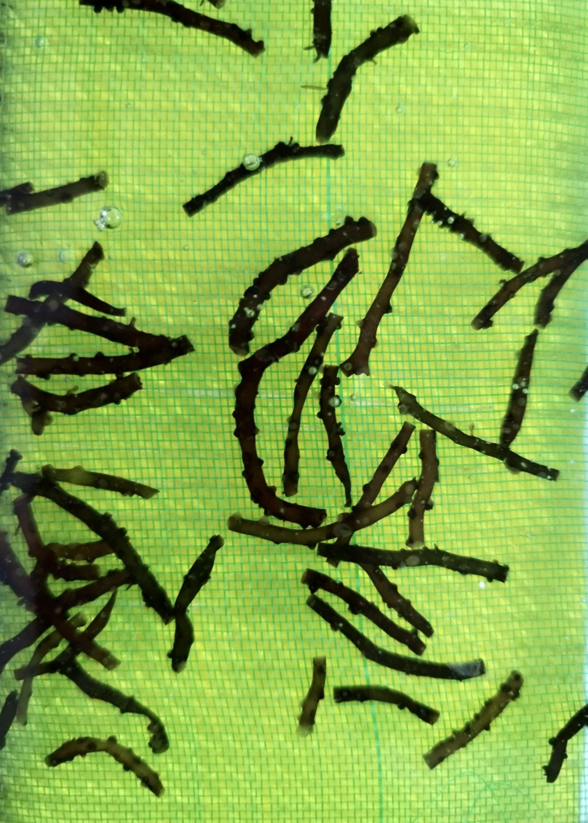 While good practices recommend selecting healthy thalli with active growth, the dominant traditional method often bypasses this, harvesting the growing portions and leaving older material behind. The material degrades after 1-2 years, increasing susceptibility to pests and reducing productivity, a key factor in the historical decline of quality in long-standing cultivation systems. In this sense, it is highly recommended to renew approximately one-third of seed annually using spore-fixed ropes.